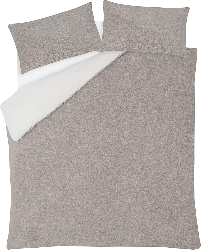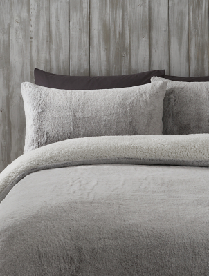 Grey Faux Fur Tipped Reversible Duvet Set Home George At Asda